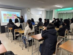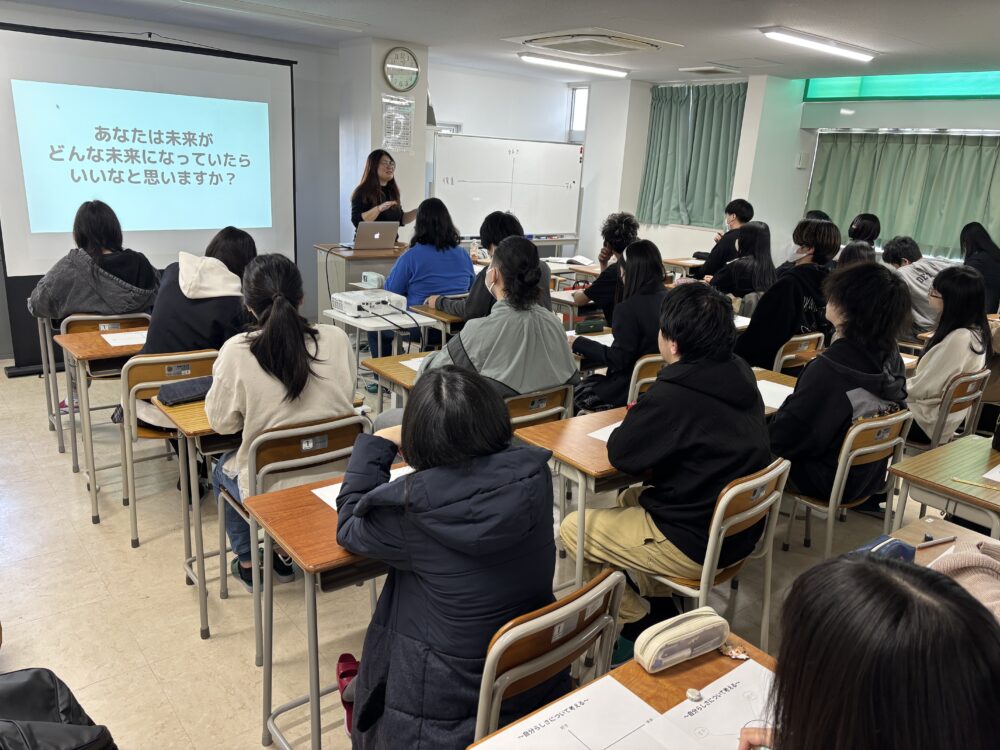 2025年11月18日 / 最終更新日 : 2025年11月18日 神須学園高等学校ホームページ担当 アシストコース アシスト2年生 Kタイム 福祉教育 アシスト2年生のKタイムで福祉教育「SDGsと自分らしく生きる」についてを講師の方をお招きし、講演していただきました。聞いたことはあるけれど・・・具体的には知らないことが多いSDGsについては分かりやすく説明してもらい生徒のみなさんもしっかり講演を聞いていました。自分らしく生きることについては、ワークシートを使い実際に「自分自身」に向かい合うことができました。