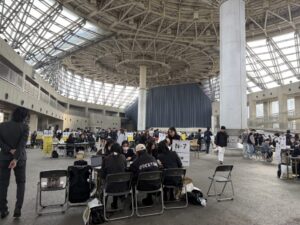 11月27日(木)、鶴見区にあるハナミズキホールという場所で、進学・就職説明会が行われ、大阪府にある通信制高校の生徒を対象とした説明会で、大学・短大・専門学校、企業が多数参加されました。今回は他校生徒さんと観光バスの乗り合わせで、会場まで向かいました。