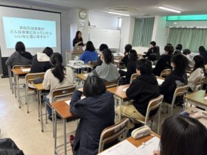 説明される方もやさしく丁寧にお話をしてくださり、生徒たちは積極的にお話を聞けてました。体験ブースもあり、仕事観を養いながら、学校選択にも活かせたと思います。本校からも数名の参加生徒がおり、進学について各学校の話を聞かせていただきました。生徒たちは複数の興味ある学校のブースに向かい、熱心に取り組んでおりました。