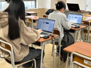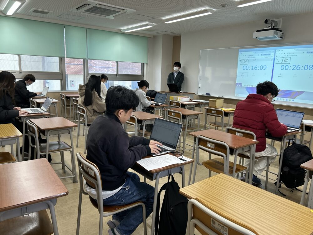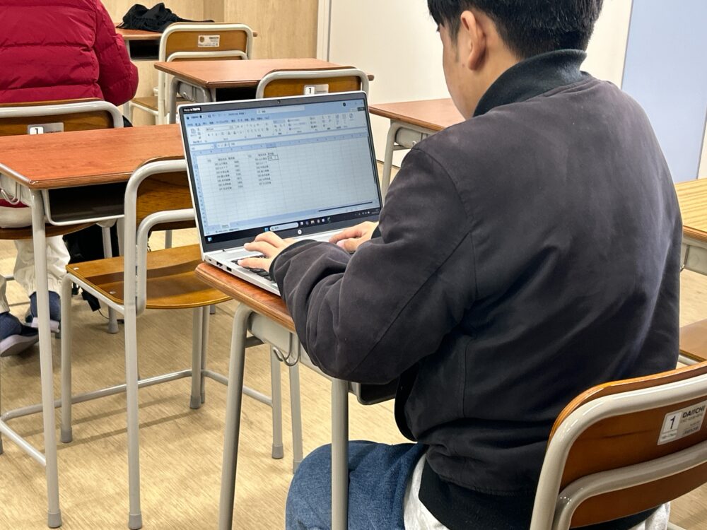 検定が始まると、教室は静寂に包まれ、カタカタという打鍵音だけが響く集中空間に。制限時間いっぱいまで画面を凝視し、ミスがないか何度も見直しをする粘り強さは、この1年間の大きな成長の証です。