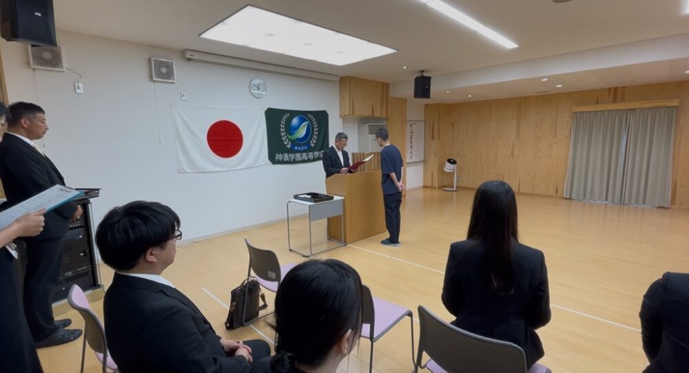 令和7年9月30日、「第10回神須学園高等学校 前期卒業証書授与式」を行いました。暑さも少しゆるみ、すがすがしい中、生徒は参列され、粛々とした式でした。